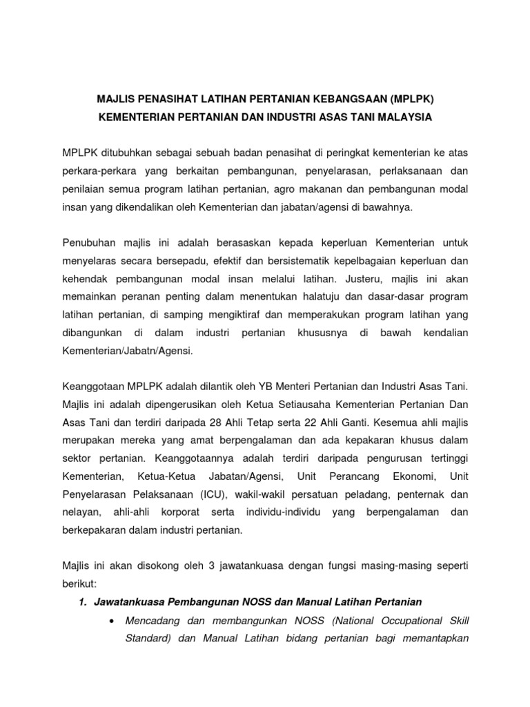 Kenyataan Media Majlis Penasihat Latihan Pertanian Kebangsaan Pdf